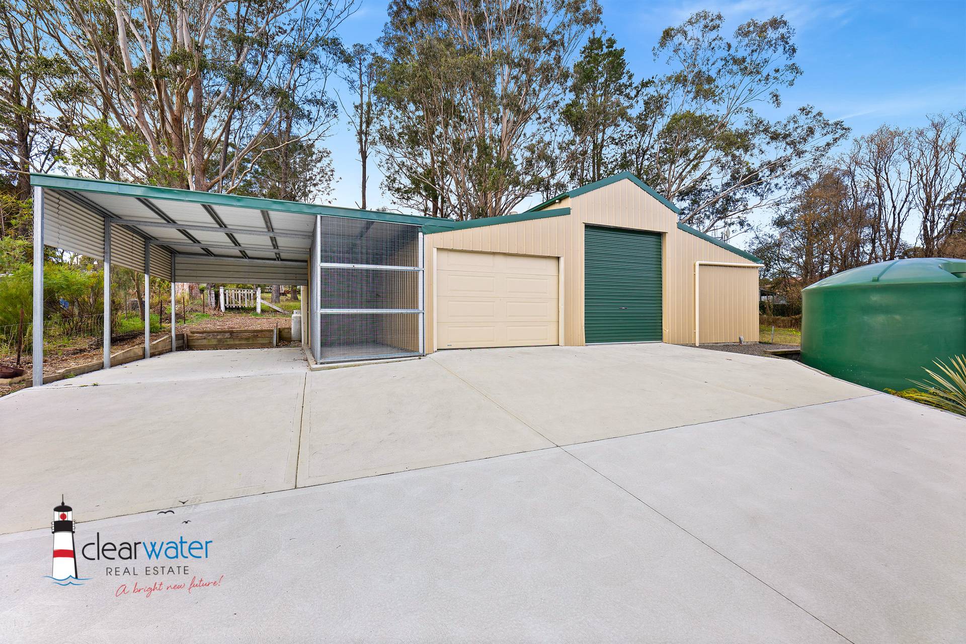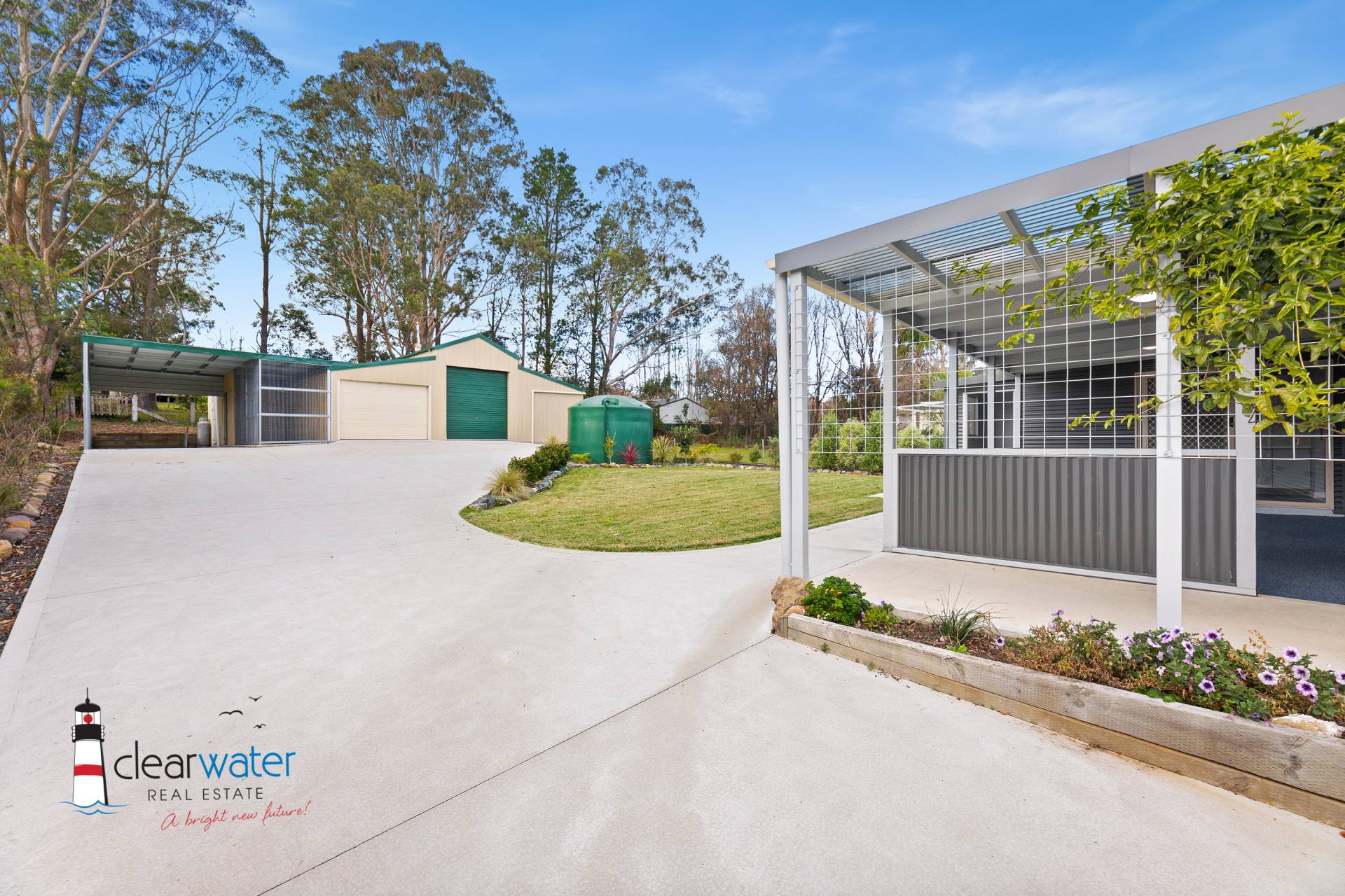 This 1214 m2 fully fenced gentle sloping block has been beautifully landscaped, featuring underground drainage, low maintenance gardens attracting many native birds and the kookaburras just love the surrounding gum trees. Utilise the wide concrete driveway from your front gate all the way to the back to the shed. Town water plus a large 5000 gallon water tank that collects water from shed and provides water to the toilets and the garden taps.