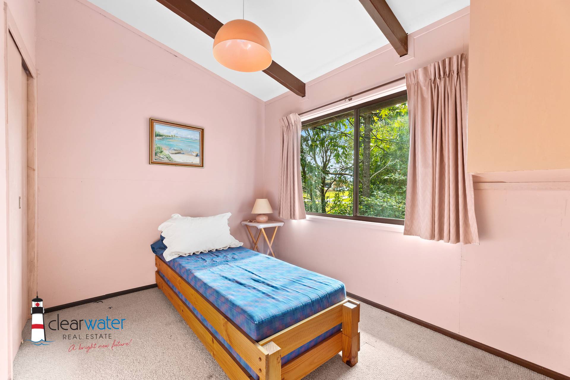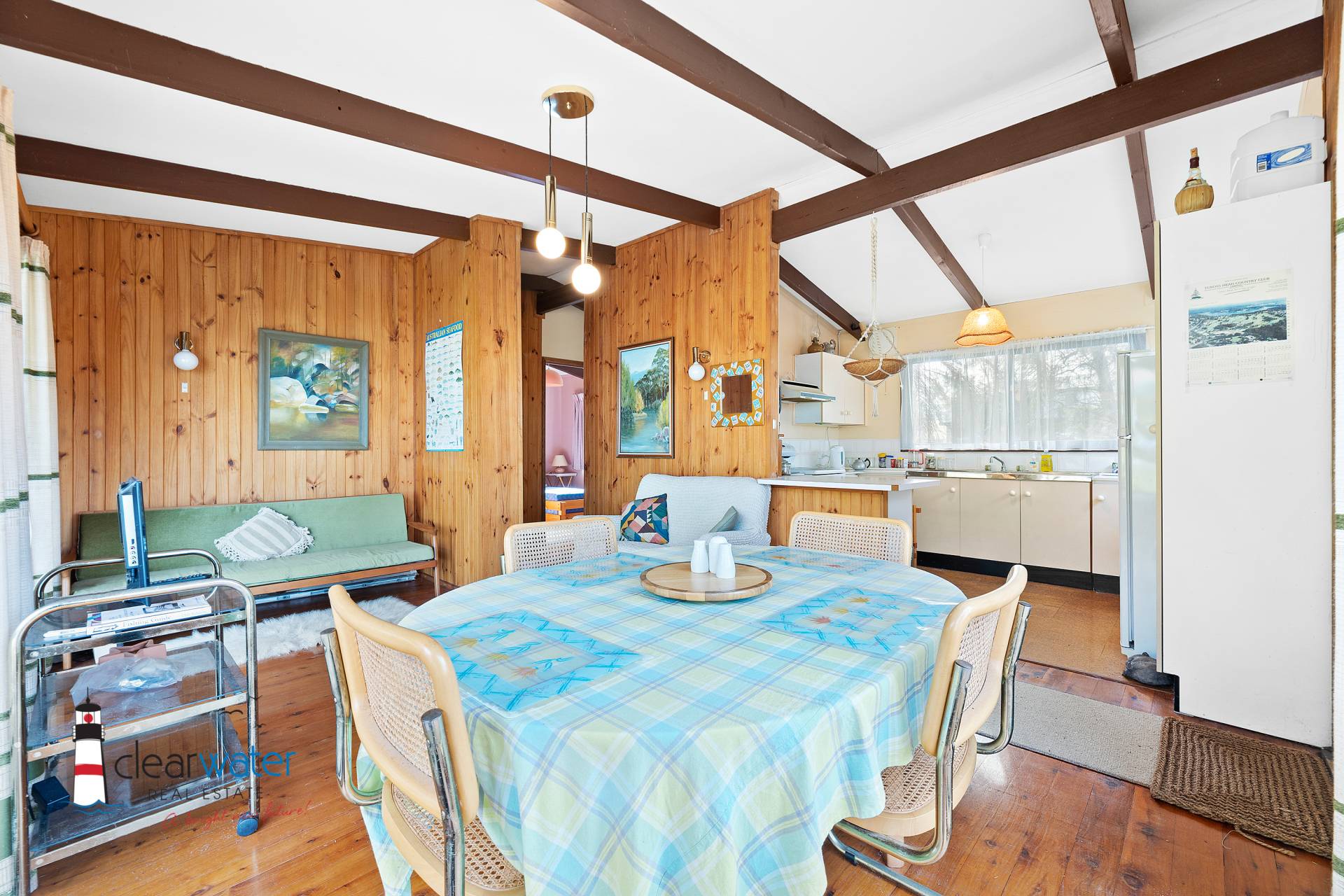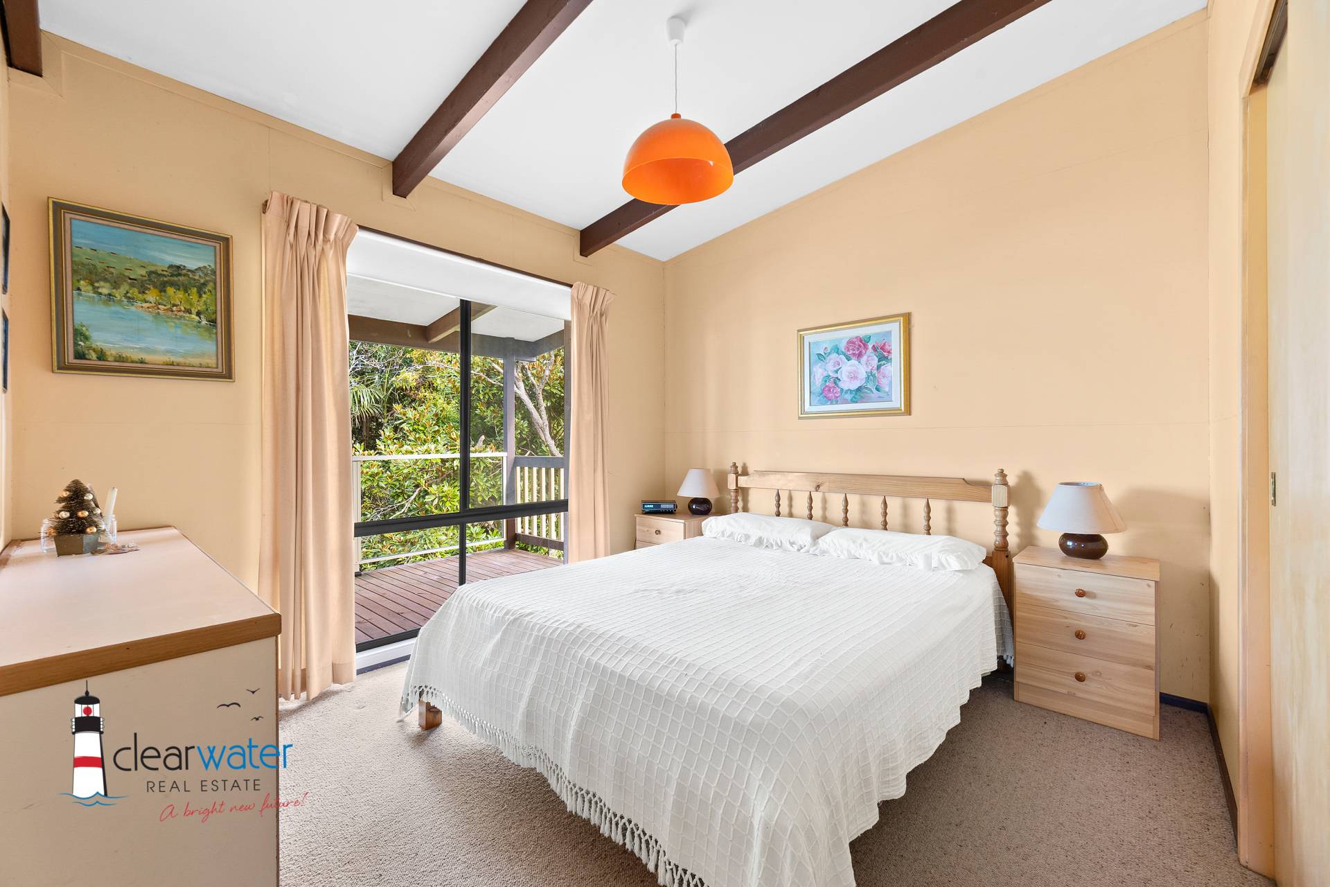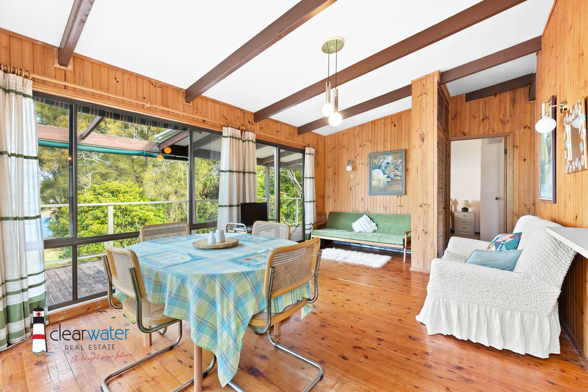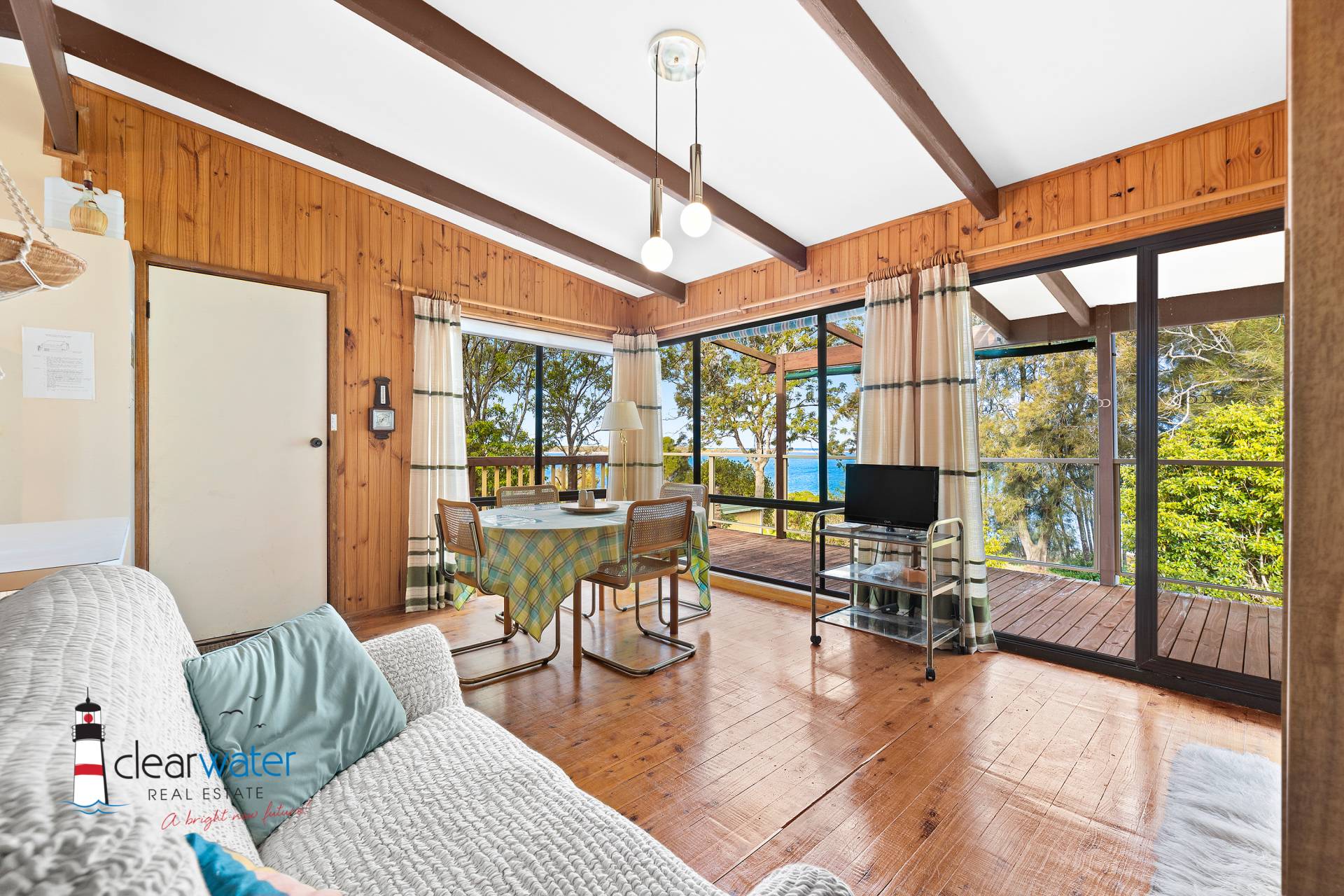 Combined lounge and dining upstairs, with good sized deck showcasing the lovely water view, along with 2 bedrooms and bathroom.