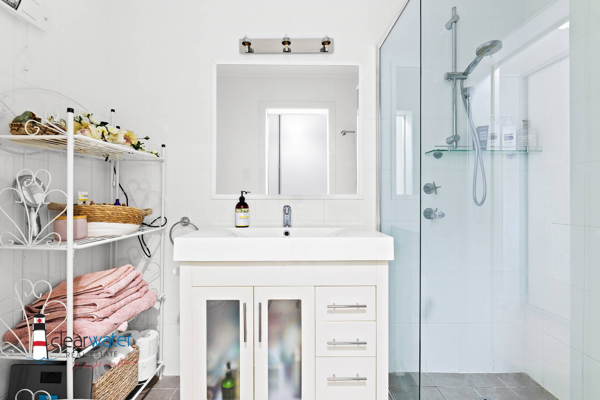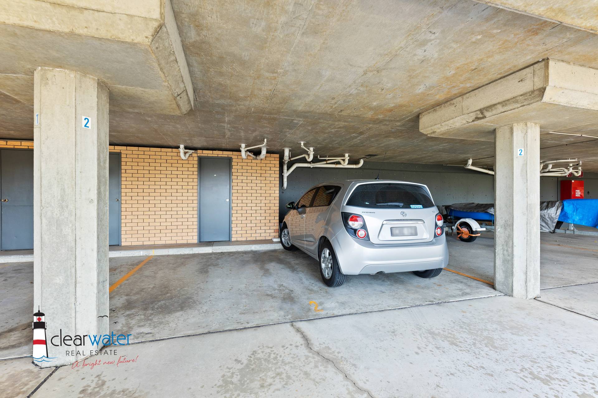 The two car parking spaces are on the ground floor with automated electric roller doors and a storage space perfect for storing your fishing gear or kayaks.