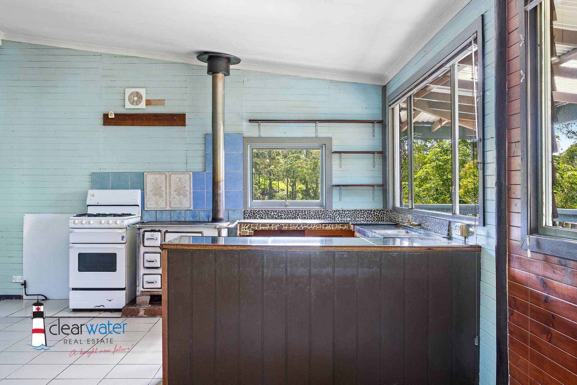 Step inside the open plan living area to experience the rustic charm and all the character this home has. There is an open stone fireplace, racked ceiling, an old wood stove and a quirky bathroom just cements this property as unique. The house itself needs a face lift but appears to be a sturdy strong build, most of the floor coverings have been removed and the house could use a paint inside and out to make it shine again. Stunning views are not only captured through all the large windows, but also from the wrap around veranda on 3 sides on the house making it the perfect place to enjoy the beautiful views of Tilba's Mount Gulaga.