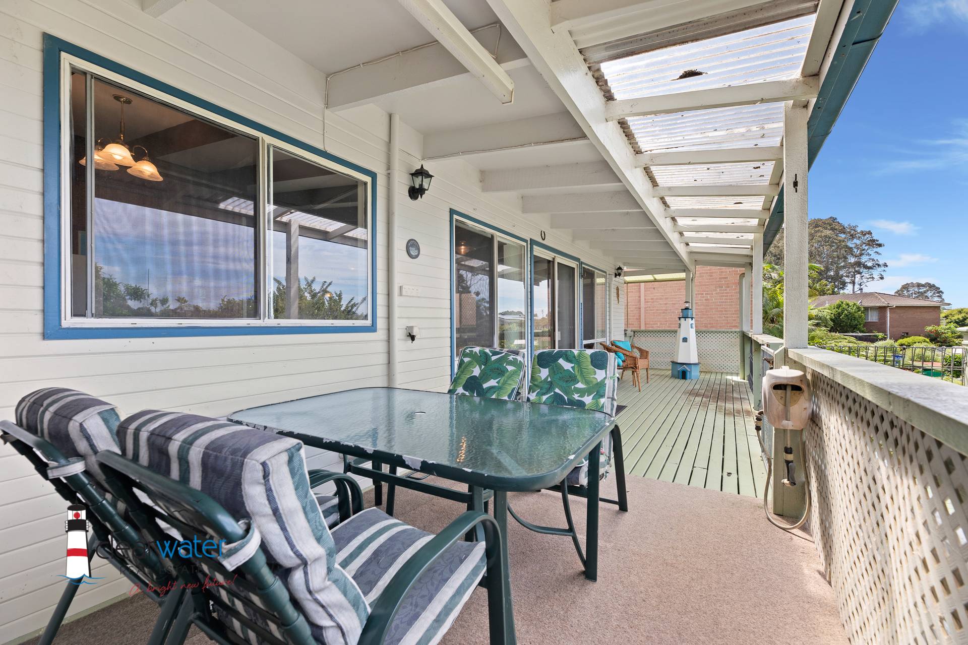 Upstairs: Open plan layout with cathedral ceilings to give you a sense of space and light. Reverse cycle air conditioner, easy access to the full length rear deck and a glimpse of the inlet. The kitchen is straight from the 70's, with its bright green laminex bench tops and light timber doors, all of which are in very good condition. Three good sized bedrooms, all with built in robes, and a central bathroom. The spacious covered rear deck runs the full length of the home and is great for entertaining family and friends.
