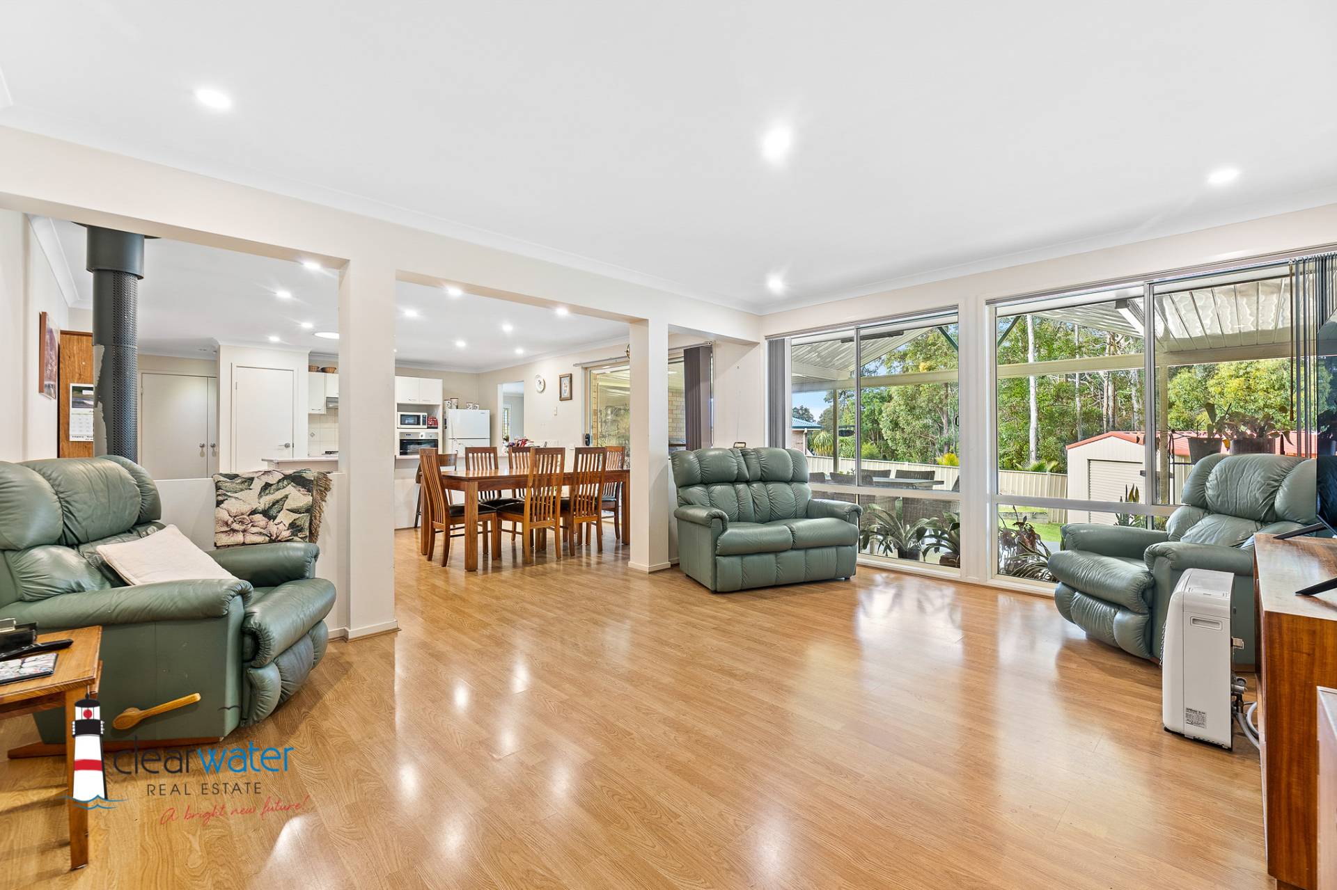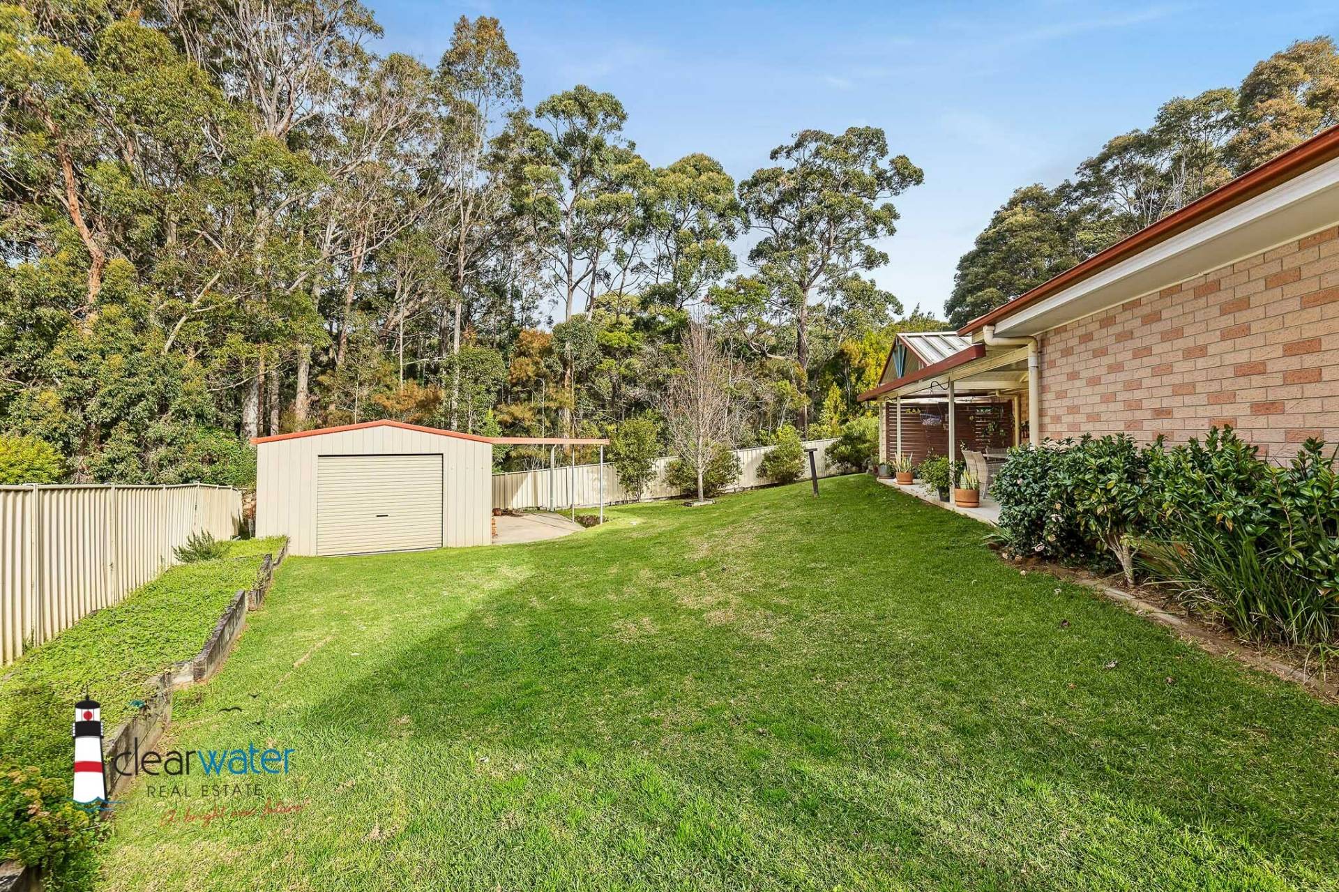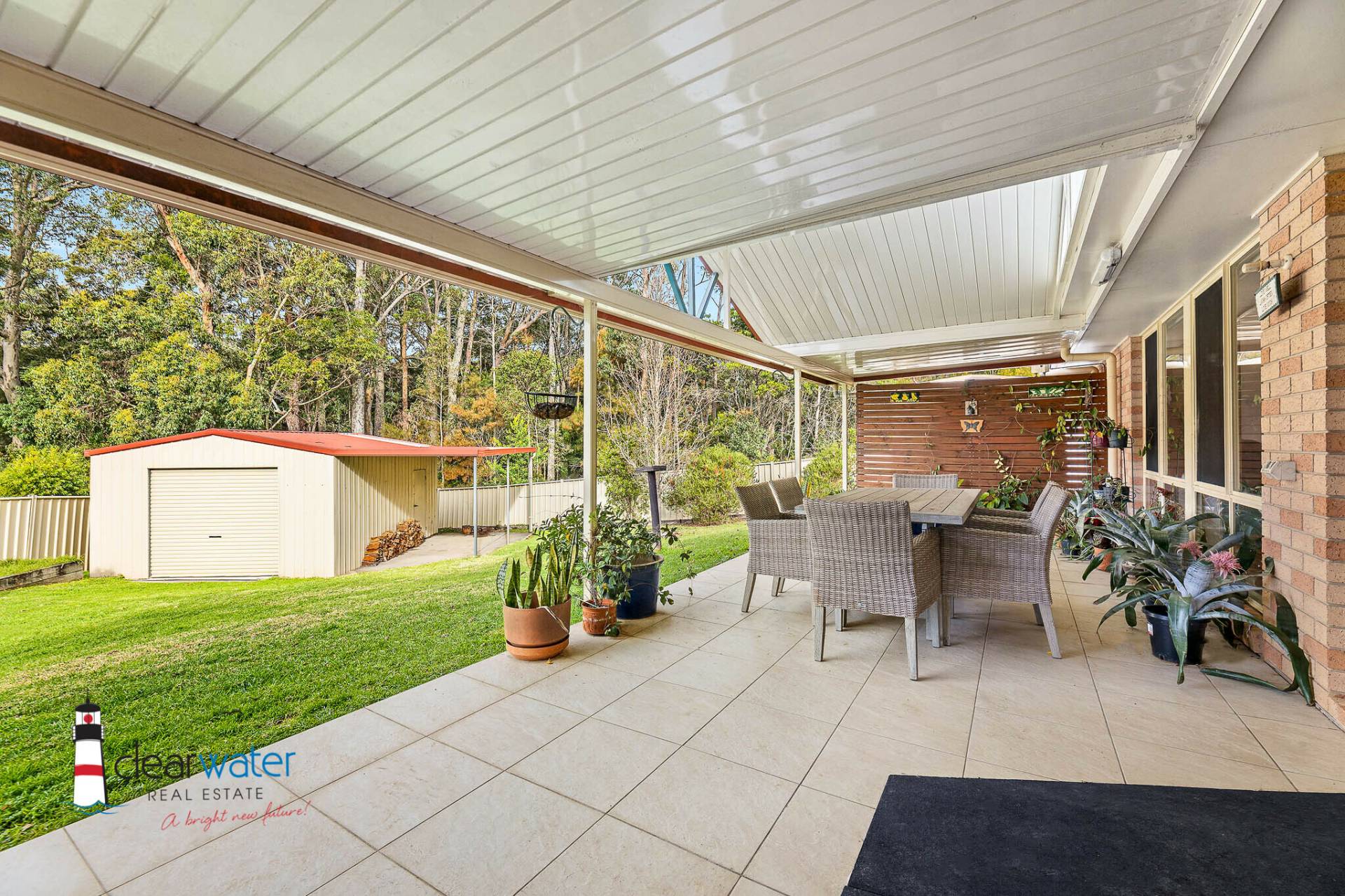 A solidly built and maintained brick and tile home in the heart of the stunning Sapphire coast. Four good sized bedrooms, large open plan kitchen, dining and family space, central main bathroom, ensuite and two large separate living spaces will make this property tick the boxes of a lot of concerning buyers! Add to that a generous block size of 924sqm, two garages, one double (with internal access) and a separate single garage and workshop, a large garden shed and ample space for boats, caravans, and workspace for your dreams to unfold. Sit either on the front veranda and enjoy the peace and quiet of this lovely cul-de-sac street or out the back listening to the birds in the bush and trees behind.