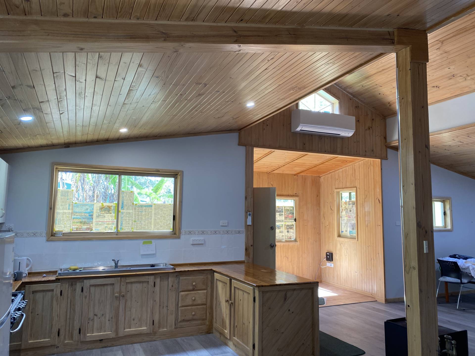 For Rent: Three bedroom, one bathroom property on tank water located in Bingie, available to rent from January 2025. This home is single level and has been newly renovated throughout. 3rd bedroom/Loft, air conditioning, bathtub, wood stove and NBN are all available.  On account of lack of fencing, zoning of environmental living, and access to neighbouring dams, this property may not be suitable for those with pets. A second property is located on the 2.67HA block, but tenants will only be responsible for maintaining grounds directly around your rental.