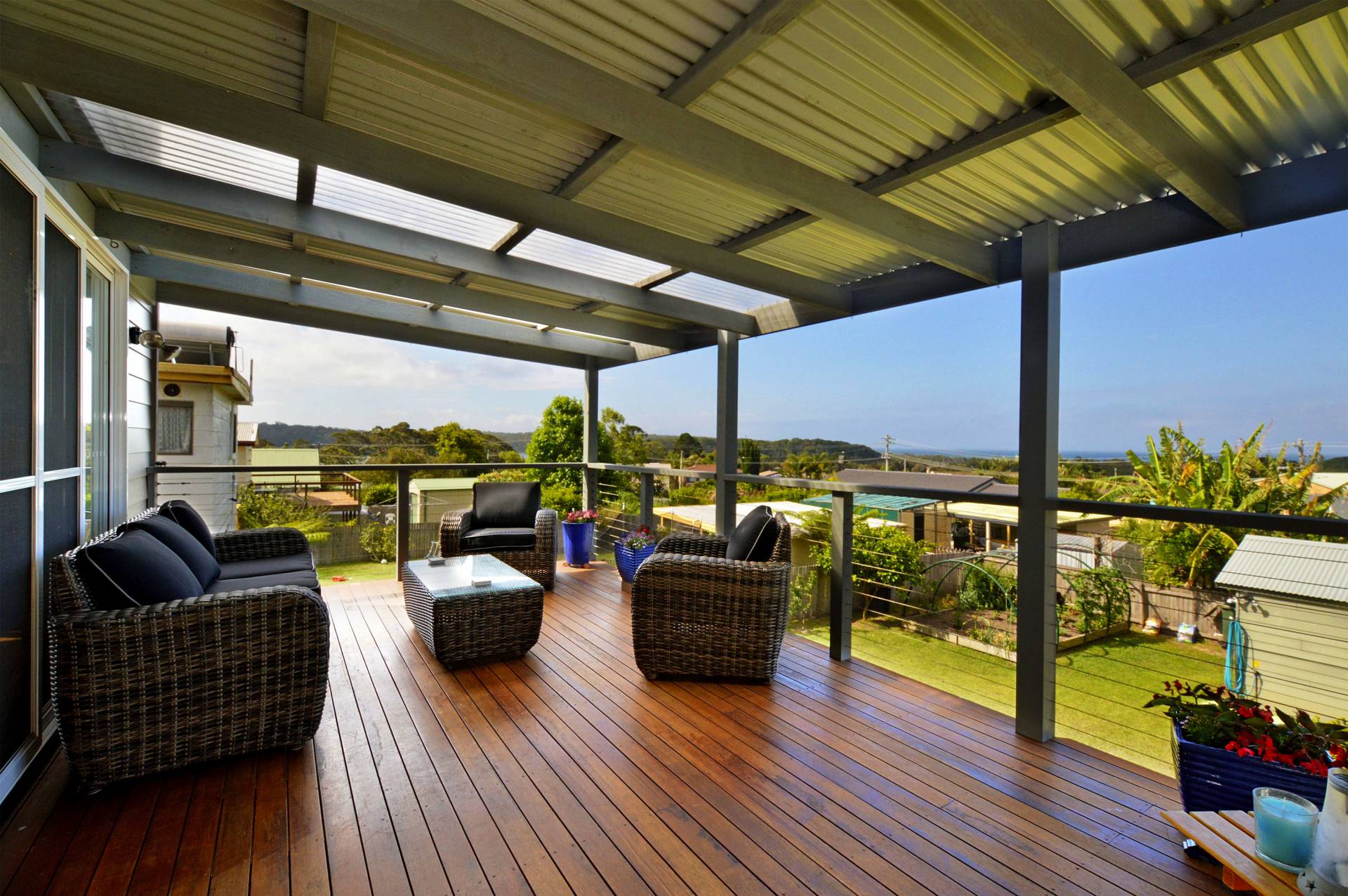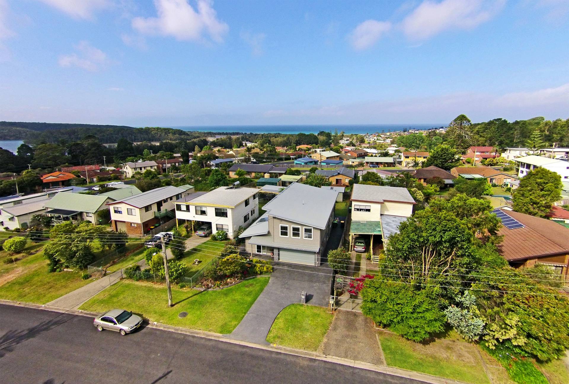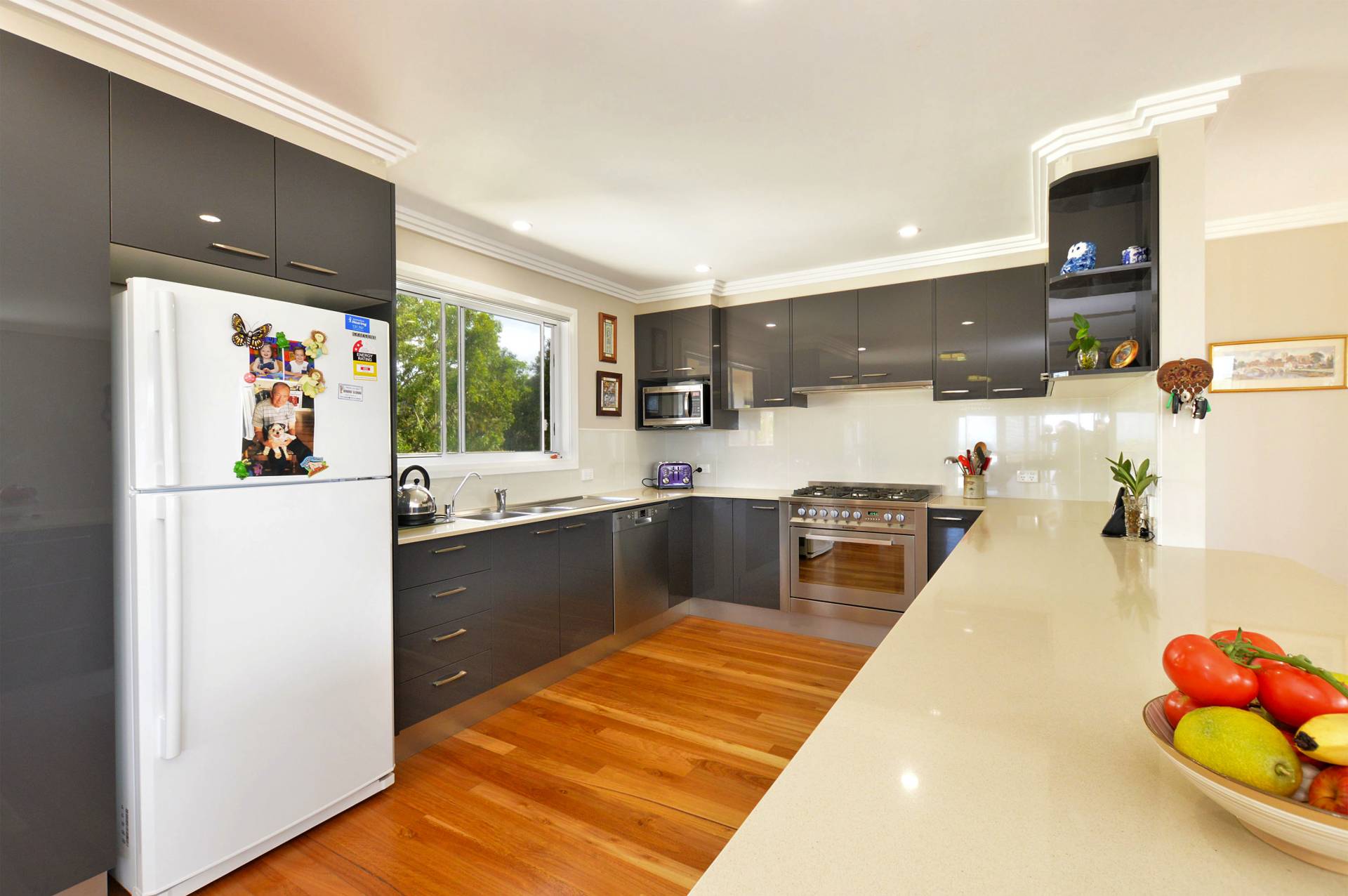 Features: Chef's kitchen with quality appliances, open plan living/dining, computer nook (behind double doors) four good sized bedrooms (all with built in robes), two bathrooms, large patio for alfresco dining, ocean views, easy care gardens and nice sized vegetable patch. There is also a double garage, separate workshop and extra parking in the front.